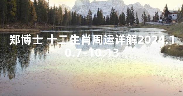 郑博士 十二生肖周运详解2024.10.7-10.13
