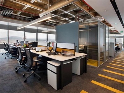 办公室中办公桌也不能正对着门口、楼梯、楼道、电梯等等,如果是出现了这种情况,那么可以用屏风来挡一下,因为一打开门,或者是一上楼的时候,就能看到你的工作状态,这会叨扰到你的工作状态,让你没有隐私,还会引来是非。