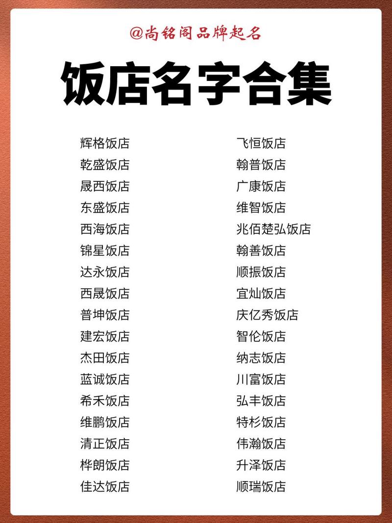 一个成功的饭店店名,不仅是一个符号,更是一种力量,一种文化,一种营销手段。它能吸引顾客,提升品牌形象,甚至影响经营运势。在起店名时,一定要慎重考虑,多方考量,力求打造一个最适合饭店发展的完美店名。